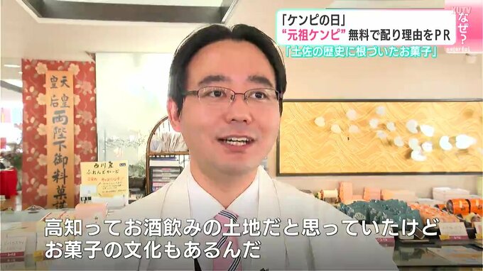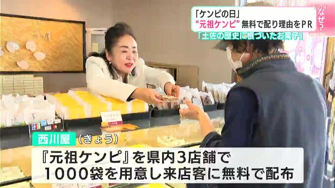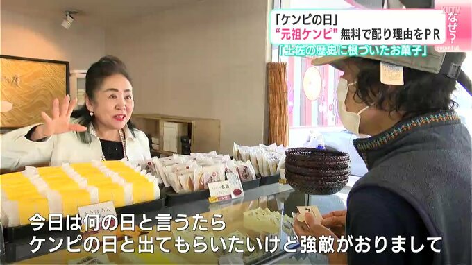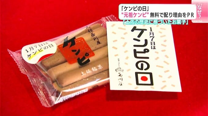 1月7日は「ケンピの日」でもあります。その理由を広く知ってもらおうと、高知市の老舗和菓子店が無料でケンピを配り、PRしました。