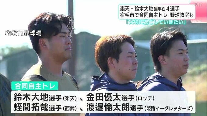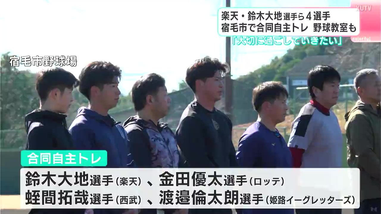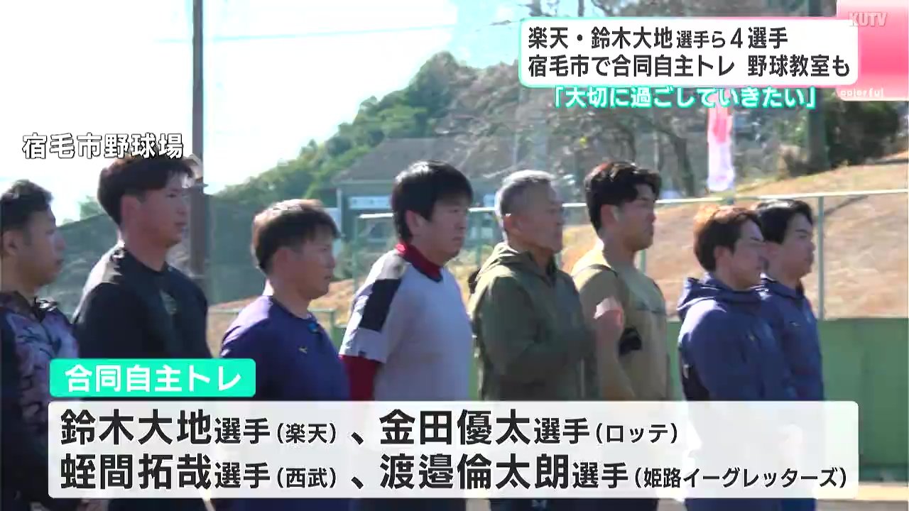 宿毛市野球場などで合同自主トレを行うのは、東北楽天ゴールデンイーグルスの鈴木大地(すずきだいち)選手ら4人のプロ野球選手です。