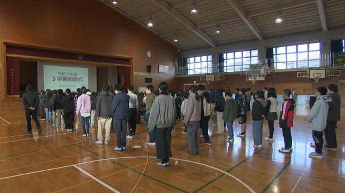式では武林勝志校長が、「3学期は次の学年につなげていくための準備期間である」と伝え、「1年の振り返りを行い、4月からの新学年につなげてほしい」と子どもたちにエールを送りました。