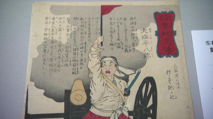 「負けた側」に寄り添う史料は、このほかにも展示されています。「天保の大飢饉」が背景となった「大塩平八郎の乱」に関する錦絵です。