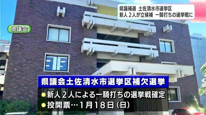 現職の辞職に伴う高知県議会土佐清水市選挙区の補欠選挙が告示され、新人2人による選挙戦が確定しました。