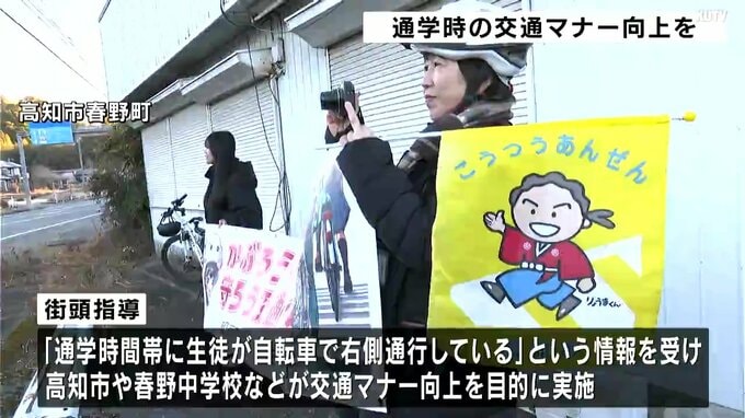 通学の際の交通マナー向上を目的に、高知市春野町で生徒たちに対する街頭指導が行われました。