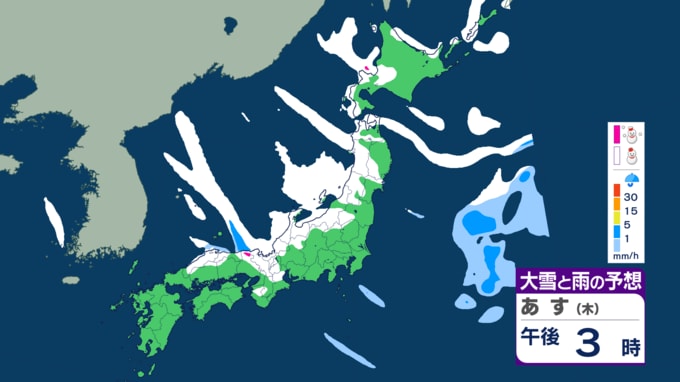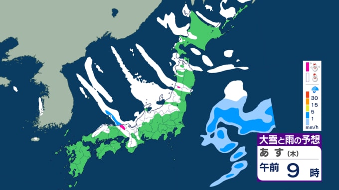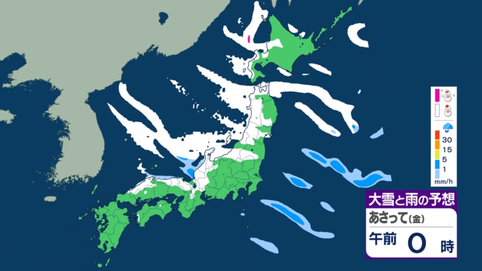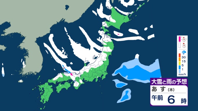 雪の予想 22日(木)朝6時~23日(金)朝6時