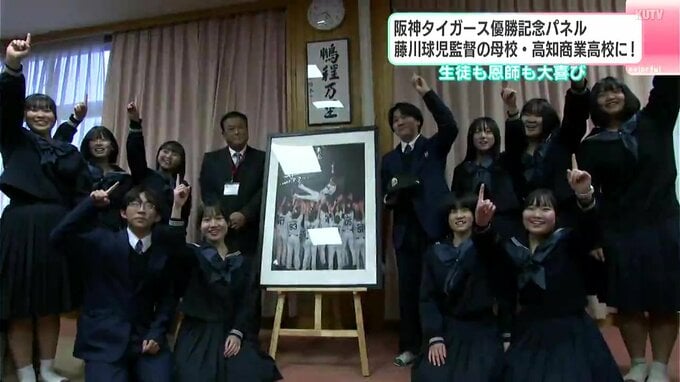 セ・リーグ優勝を成し遂げた阪神タイガースから藤川球児(ふじかわ・きゅうじ)監督の母校高知商業高校に巨大な優勝記念パネルとチャンピオン帽子が贈られました。「大先輩」のサインを見た生徒たちからは歓声が上がり、藤川さんの恩師からも喜びの声が聞かれました。