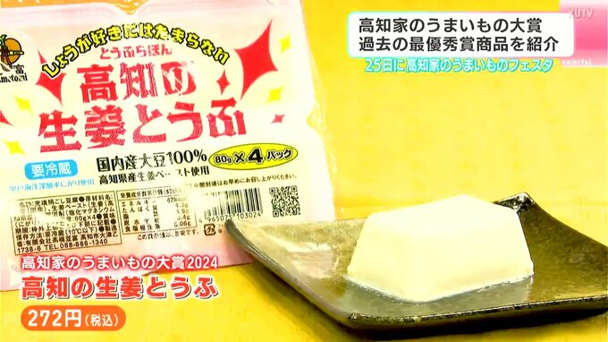 受賞した企業は「高橋豆腐」。豆腐の製造だけでなく工場の隣に店舗を構えて自慢の豆腐を使った絶品の肉吸いも販売しています。2024年のうまいもの大賞で最優秀賞を受賞したのがこちらの「高知の生姜とうふ」です。