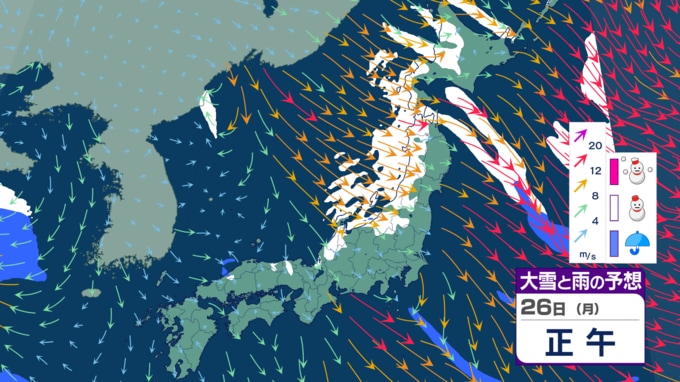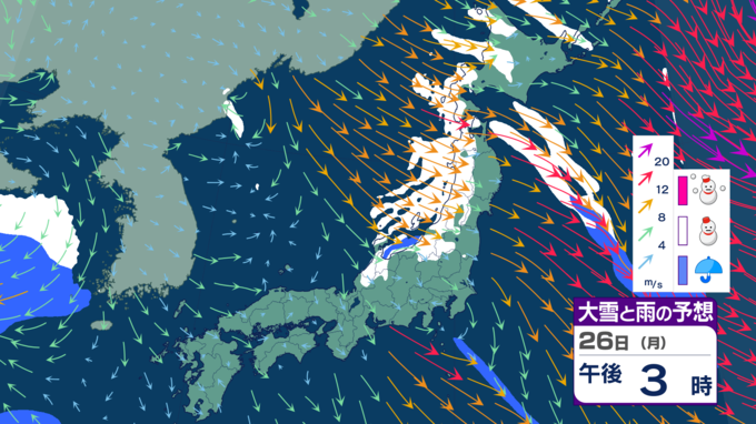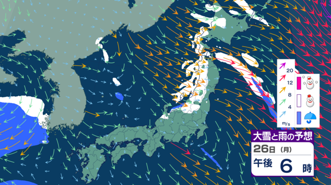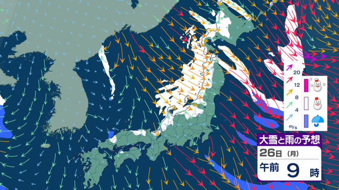 【大雪情報】寒気居残り25日にかけて警報級の大雪の可能性、ところにより70センチの大雪に⋯どこで、どれだけ降る?【雪シミュレーション】 2026年1月23日(金) 19:50 国内 天気 【26日雪シミュレーション】 26日には各地、雪が弱まるでしょう。