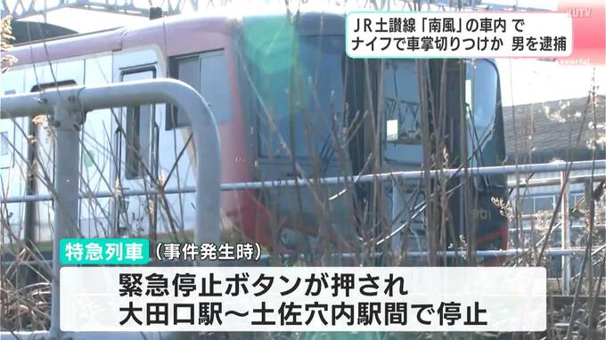 JR四国によりますと、事件が起きた時、列車は緊急停止ボタンが押され、大田口駅から土佐穴内駅方面に600mほどの線路上で緊急停止したということです。