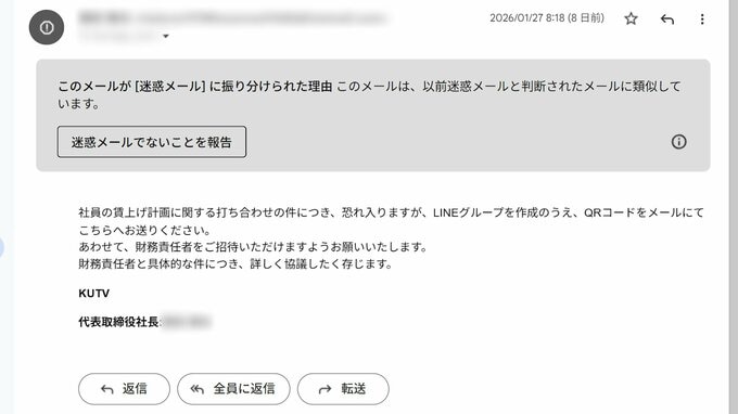 テレビ高知の記者に突如、「オフィスにいるか?」「賃上げ計画の件」などと社長を名乗る人物からメールが届きました。しかし、社長に確認したところ、社長はメールを送っていないことがわかりました。最近流行しているという、"ニセ社長"からの詐欺のメールだったのです。