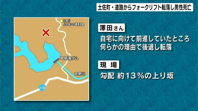 4日午後、高知県土佐町の道路でフォークリフトを運転していた男性が畑に転落し死亡する事故がありました。