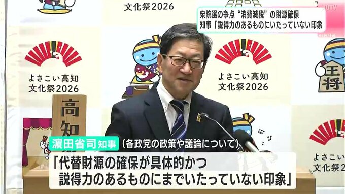 8日が投開票日の衆院選。濵田知事は争点の一つになっている消費税の減税について社会保障費の財源確保や、地方財政の安定運営への影響を懸念していると述べました。仮に食料品の消費税が今の8%から0%になった場合、高知県内ではおよそ60億円の税収減になるとしたうえで各政党の政策や議論について「代替財源の確保が具体的かつ説得力のあるものにまでいたっていない印象」と述べました。