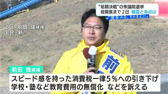 国民民主党の前田さんは、2022年の参議院選挙以来の国政選挙です。▼スピード感を持った消費税一律5%への引き下げや▼学校、塾など教育費用の無償化を訴えています。「積極的に現地へ」という県議時代からのモットーを守り、「政策の実現」を強調していて、新たな選択肢を示したいとアピールしています。