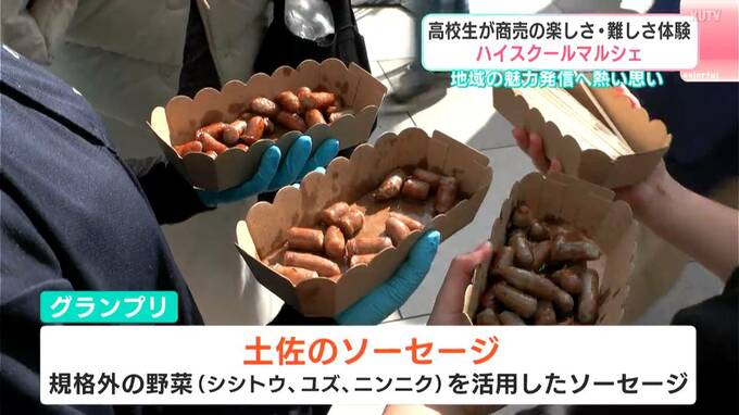 今回、こうした高校生たちの輪に特別に加わったのが、高知農業高校の生徒たちです。販売したのは、テレビ高知が主催した地域課題解決アイデアコンテスト「こじゃんとえいグランプリ」で最高賞に輝いた「土佐のソーセージ」。シシトウ・ユズ・ニンニクなど規格外の野菜を活用した自信作が、この日初めて、一般向けに販売されました。