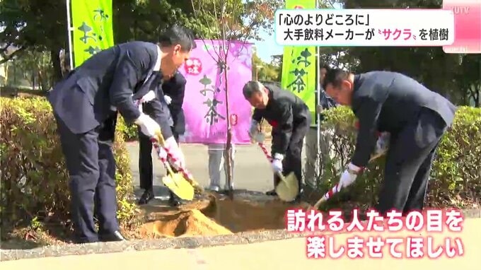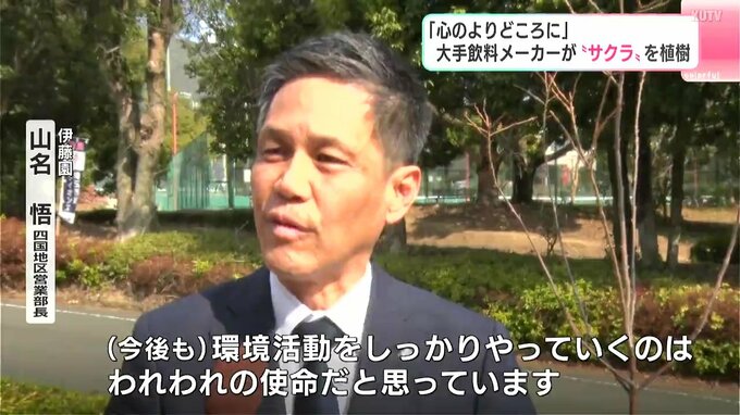 公園の利用やスポーツ観戦など大勢の人が訪れる高知県立春野総合運動公園に、大手飲料メーカーがサクラを植樹しました。