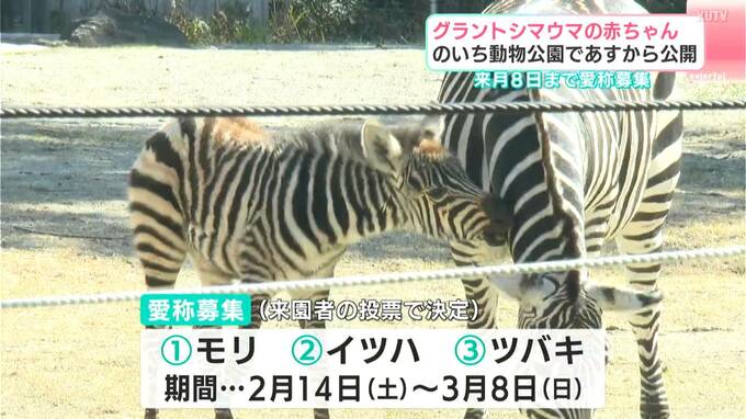 愛らしい姿を見せているのはグラントシマウマのオスの赤ちゃん。1月28日に高知県香南市ののいち動物公園で父親の『リク』と母親の『モミジ』の間に生まれました。園内でのグラントシマウマの誕生は7度目で、生まれた時は体長およそ70センチで体重は30キロほどでした。その後、母親に甘えながら母乳を飲んだり、牧草を食べたりしてすくすくと育っているといいます。2月9日から行っていた屋外に出る練習を終え14日から一般に公開されます。