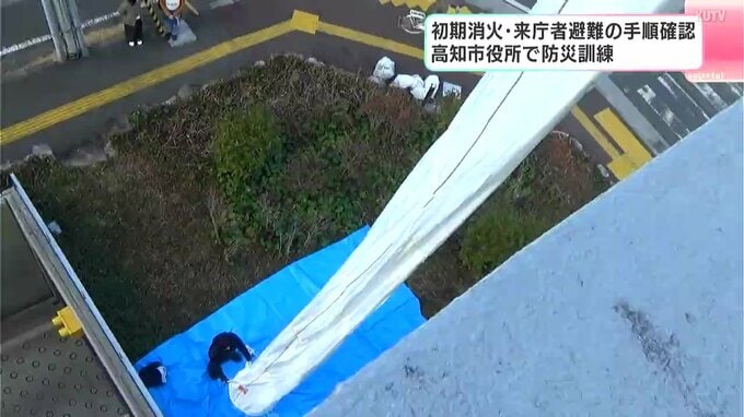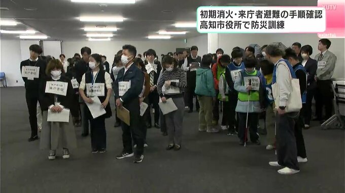 南海トラフ地震の発生に備えた対応訓練が高知市役所で行われ、職員たちが火災の初期消火や来庁者の避難誘導など役割分担を確認しました。