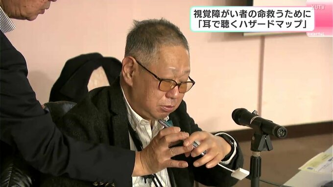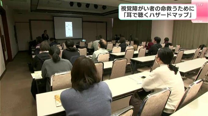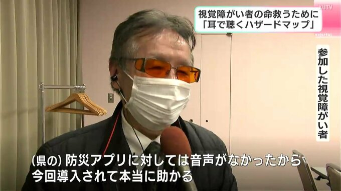 県内には視覚障がいがある人がおよそ2580人いるとされていますが、これまでのハザードマップや県の防災アプリでは避難に関する情報を届けることができていませんでした。参加した自治体の職員や障がい者たちは、アプリの使い方などの説明を受け、その実用性を確かめていました。