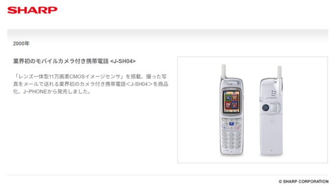 その翌年・2000年には、SHARPが開発した「J-SH04」がJ-phone(現在のソフトバンク)から発売されました。こちらは背面にカメラが付いていて、撮影した写真をメールで送れる機能が搭載されました。