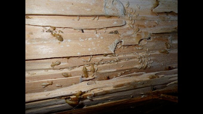 「食害されているのを初めに発見した家主の方は『倉庫の方に、何か変なのがいる⋯』ということで、駆除を頼んだみたいなんですよ。シロアリの死骸がその辺にぽろぽろ落ちているので『これは、いっぱいいるかもね』って…」