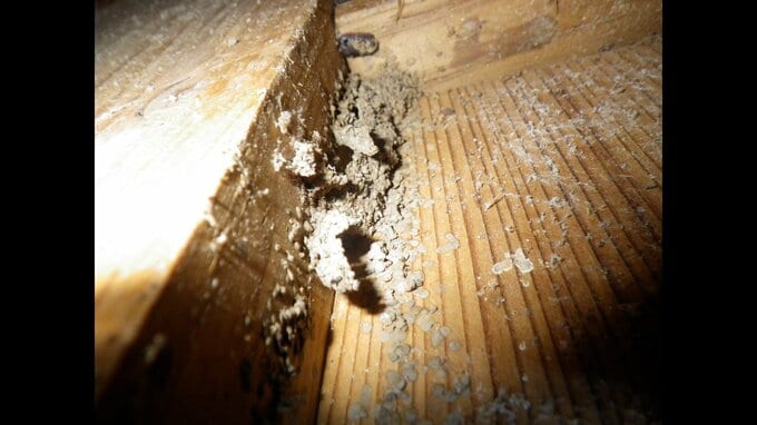 今回見つかったオオシロアリは、普通の個体とは“何か違った性質”を持っている⋯。そんな特徴が、現地では既に確認されていました。さらに倉庫の周りを調べると、このオオシロアリが生息している痕跡が見つかりました。