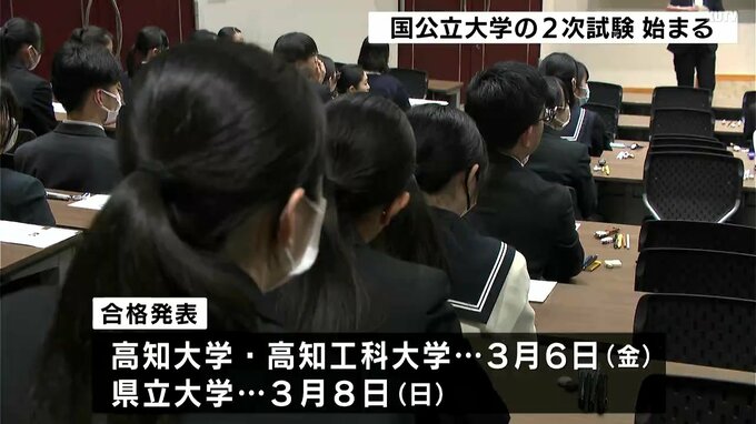25日から国公立大学2次試験の前期日程が始まりました。高知県内3つの大学でも試験が行われていて、多くの受験生が志望校合格にむけ試験に臨んでいます。