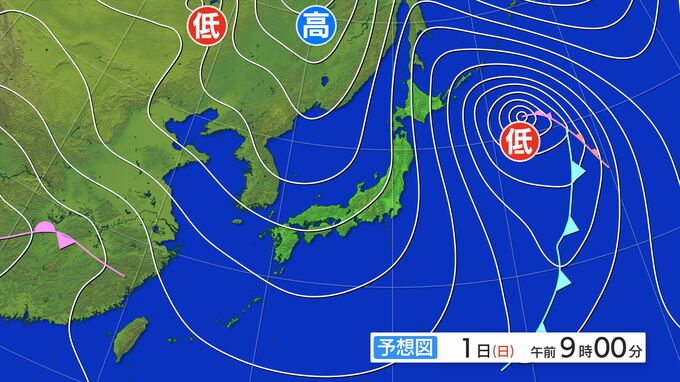 3月1日、西の大陸に前線が発生するでしょう。この前線が本州へ近づき、全国的に雨雲をもたらす見込みです。