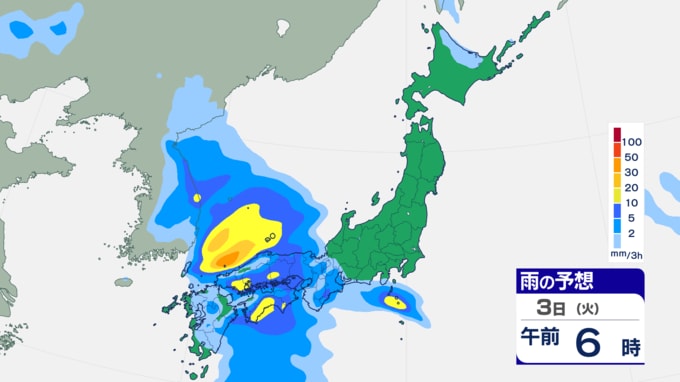 各地で渇水“恵みの雨”は…週明け3月3日ごろは大雨のところも?⋯いつどこで強まるか?【雨風シミュレーション】 2026年2月26日(木) 18:34 国内 天気 3日は全国的に雨で、場所によっては発達した雨雲が流れ込み、荒れた天気となるでしょう。雨雲の発達次第では、大雨となる恐れがありますので、週明けの雨の降り方にはご注意ください。 (KUTVテレビ高知気象予報士 中屋裕貴)