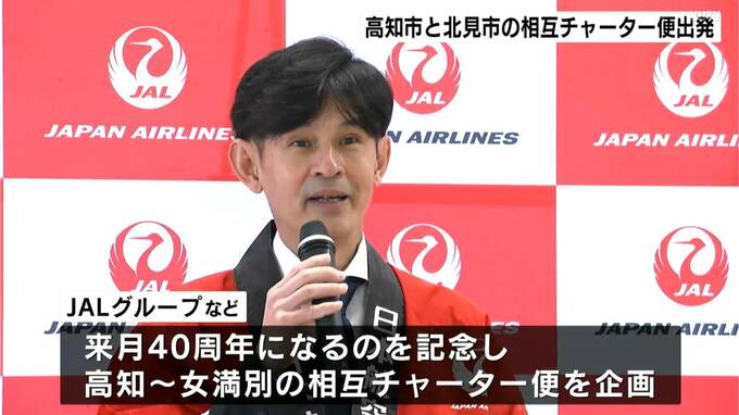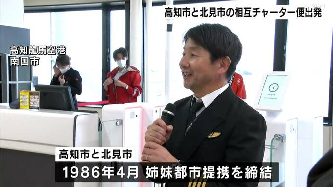 高知市と北見市の姉妹都市提携が40周年を迎えるのを記念して、高知と北海道を結ぶ相互チャーター便が出発しました。