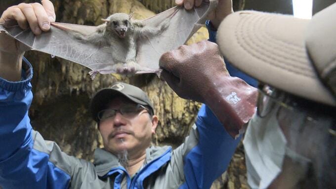 「くりくりな目でかわいい顔をしていて『空飛ぶキツネ』という異名もあります。怖いとは思いますが、ぜひ、まじまじとコウモリを見てほしい」