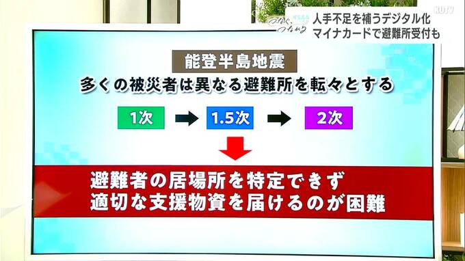 1次避難所(被災地の避難所)→1.5次避難所(被災地外の避難所)→2次避難(ホテル・旅館など)と、避難所を転々とする避難者が多かったため、石川県庁は1人1人の被災者の居場所が特定できず、適切な支援物資を届けることが難しい状況が発生しました。