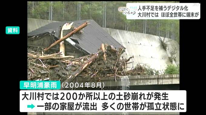 この「早明浦豪雨」を教訓にして、大川村は光ファイバーや無線LANなどの通信網を整備してきました。その中で、役場から一方的に発信するだけでなく、初めて住民との“双方向のコミュニケーション”が可能になったシステムが「タブレット型テレビ電話」でした。