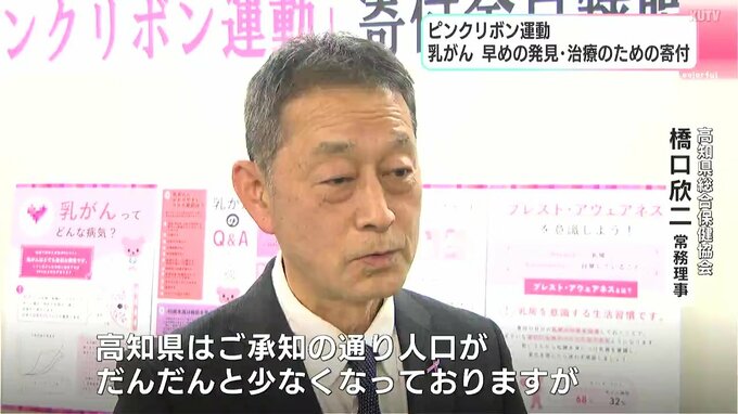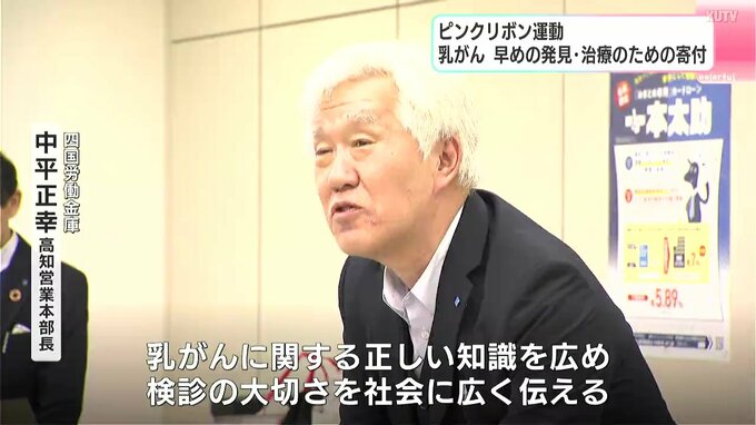 乳がんの早めの発見・治療につなげてもらおうと四国労働金庫が高知県総合保健協会に寄付を行いました。若者へのがんの学習にあて、早期受診率を向上させたい考えです。