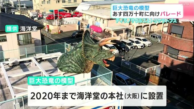 海洋堂の2施設がリニューアルされることに伴い、14日、巨大恐竜の模型が高知県南国市から四万十町を目指しパレードします。