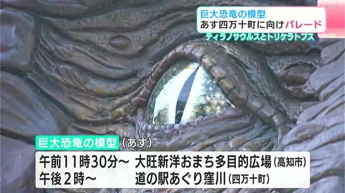 2つの恐竜は14日午前10時半に南国市の「海洋堂スペースファクトリーなんこく」を出発し、四万十町の海洋堂ホビー館四万十を目指しますが、別々のルートを移動することになっています。