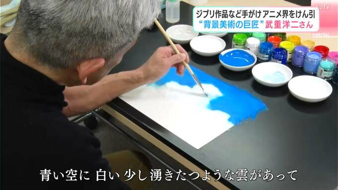 絵を描く人にとっては最高の環境であるという、高知。そんな高知で開催される背景美術の体験講座で、参加者が見ることができる「巨匠の技」を特別に、カメラの前で披露してくれた。
