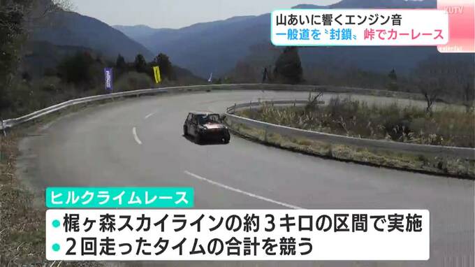 レースは「ゆとりすとパークおおとよ」まで続く、梶ヶ森スカイラインの約3キロの区間で行われ、2回走ったタイムの合計を競います。