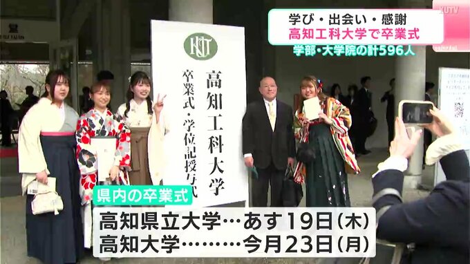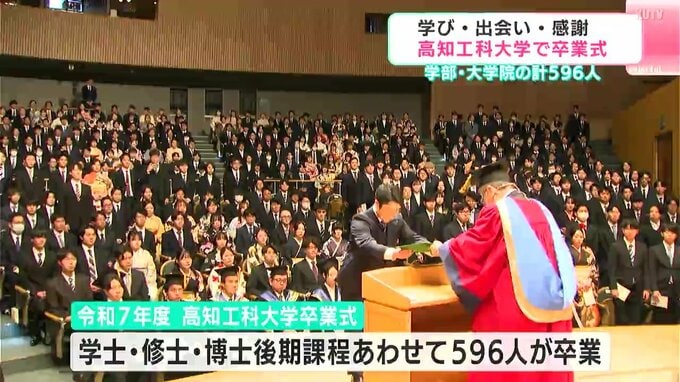 高知工科大学で18日、卒業式が行われ、およそ600人の学生が、それぞれの未来に向かって、思い出の学び舎を巣立ちました。