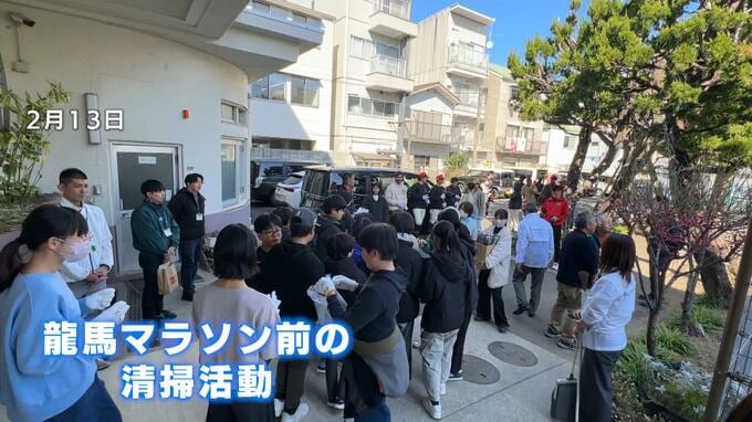 2月の「高知龍馬マラソン」の前日には、コース沿いや公園を清掃しました。