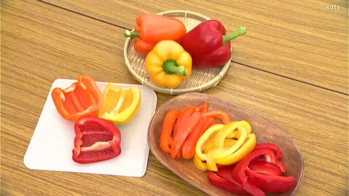 「南国市産の肉厚パプリカいただきます。甘い!甘いです!肉厚なのでジューシー、ジューシーで口の中に広がりますし、まずやってくるこの甘みで、止まらないですね」