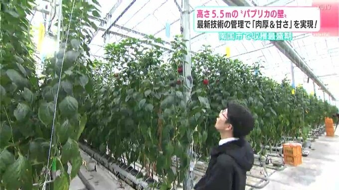 「パプリカの苗はワイヤーのある5.5mの高さまで成長し、実をつけるということです」