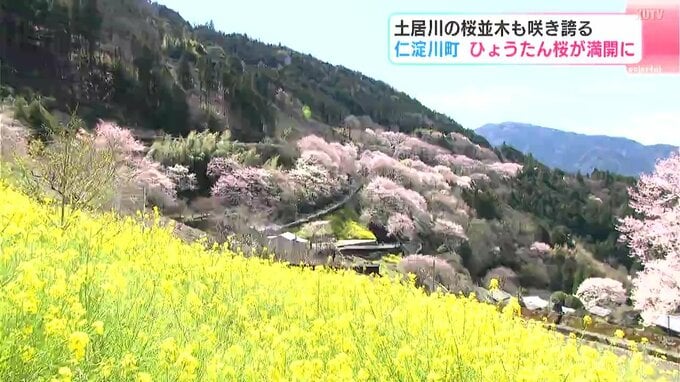 仁淀川町桜地区のひょうたん桜は、今週末にかけ満開の予想で、土居川沿いのソメイヨシノは今週いっぱい楽しめそうだということです。