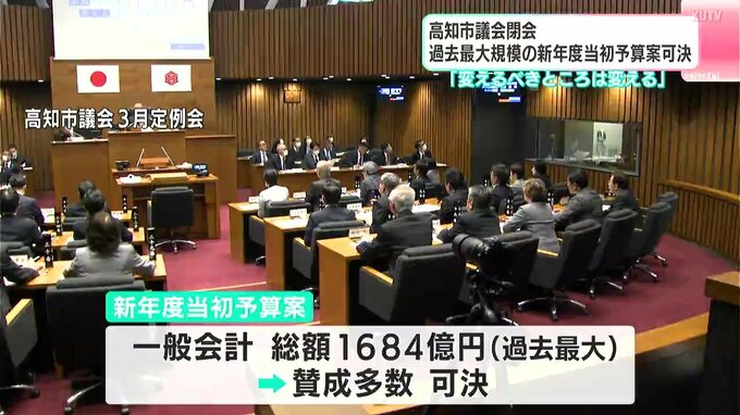 高知市議会3月定例会が閉会し、1684億円の新年度当初予算案が可決されました。