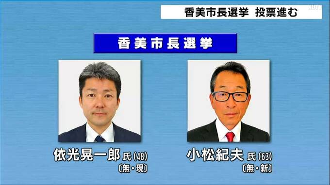 高知・香美市長選挙投票進む 午前11時現在の推定投票率は前回を下回るも期日前投票率は約5ポイント増 2026年3月29日(日) 11:42 国内 任期満了に伴う高知県香美市長選挙の投票が29日朝から行われています。香美市長選挙は届け出順にいずれも無所属で、現職で2期目を目指す依光晃一郎氏(48)と、元市議会議員の新人小松紀夫氏(63)の2人による選挙…