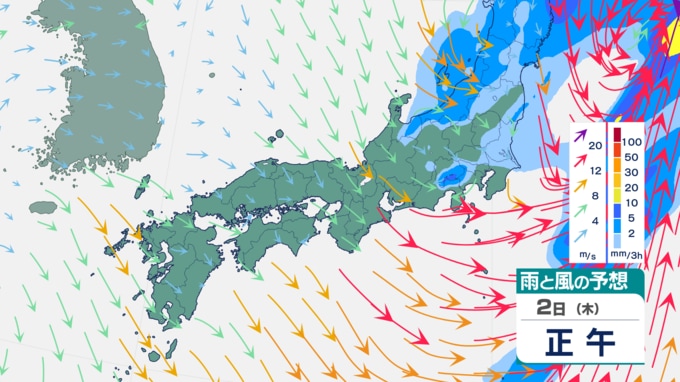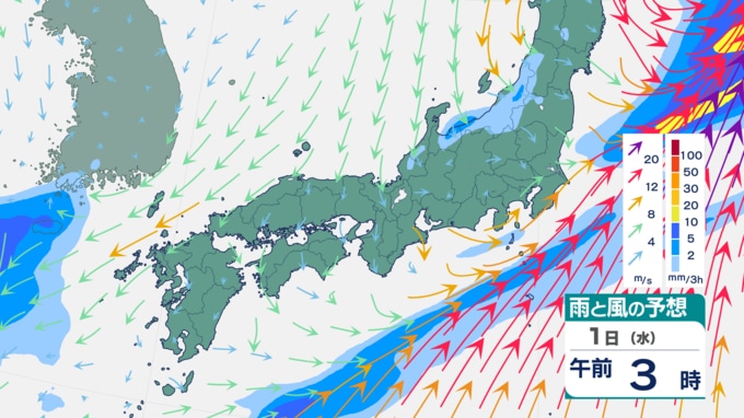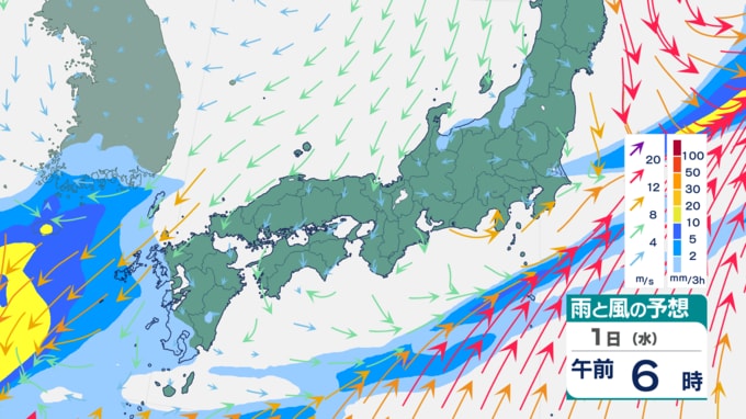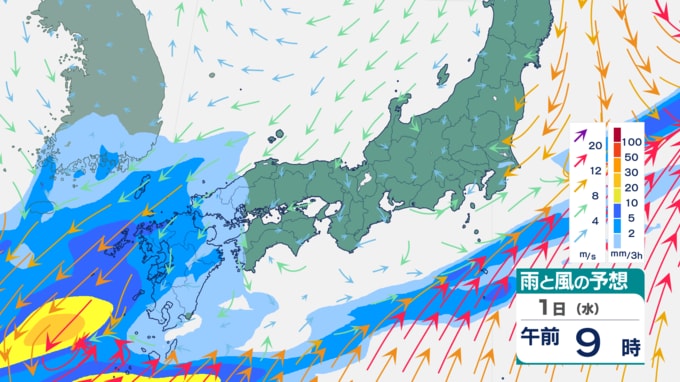 【大雨と突風の情報】 31日九州北部では「120ミリ」大雨予想⋯西日本で荒れた天気に 1日は関東でも雨と風強まる予想に(雨風シミュレーション) 2026年3月30日(月) 13:10 国内 天気 4月1日から2日までの雨風予想