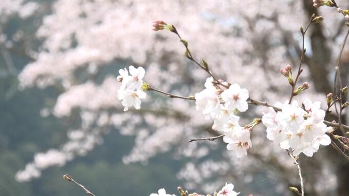 高知県四万十町昭和の「三島キャンプ場」では、ここ数日で、敷地内にあるサクラの花が一気に開花し満開を迎えました。