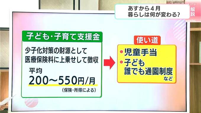 そして、「子育て支援」についても変わります。少子化対策として国の方針に基づき、「子ども・子育て支援金」が医療保険料に上乗せされて徴収が始まります。