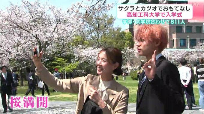 高知県内屈指の桜の名所と隣接する香美市の高知工科大学で入学式が行われ、800人を超える新入生が満開の桜のもと大学生活をスタートさせました。