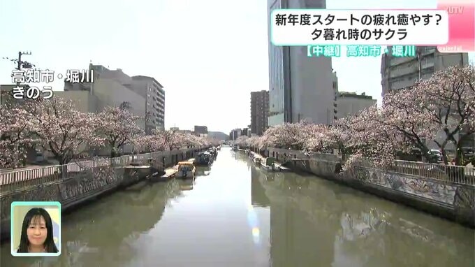 この時期らしい暖かさとなりましたね。高知県内各地でサクラが見頃を迎えています。3日は、昼間とは違ったサクラの様子を高知市の堀川から中継でお伝えします。髙田アナウンサー、お願いします。