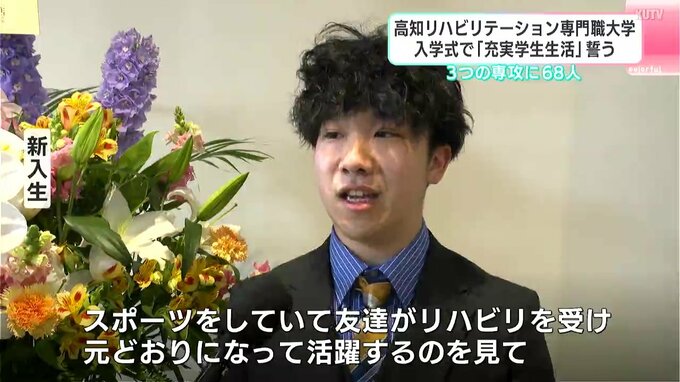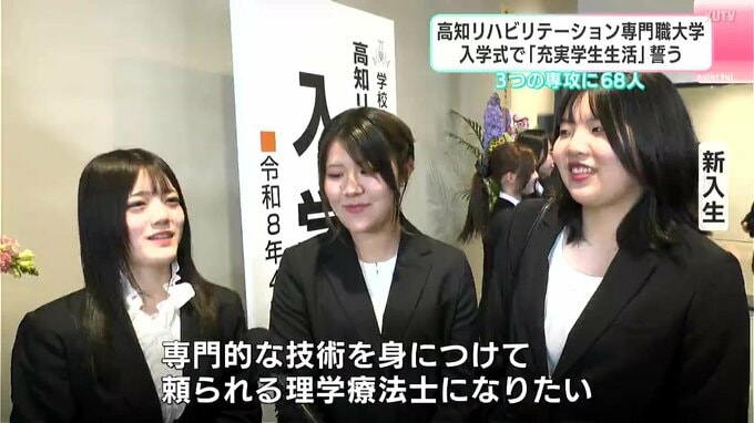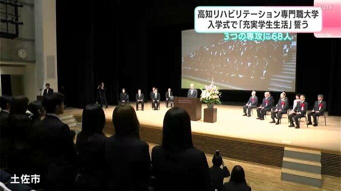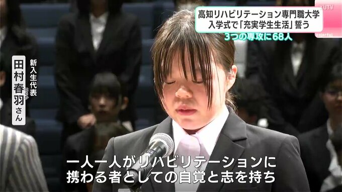 2026年度に入学したのは68人です。式では宮川哲夫学長が高知にゆかりのある偉人「ジョン万次郎」に触れながら「万次郎のような『謙虚で専門職に誇りを持ち、真心を持って接することができる』人材を育てたい」と激励しました。その後、新入生代表の田村春羽さんがこれからの学校生活への思いを述べました。