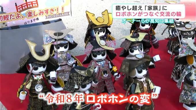 “鎧兜姿”で“刀”を持ったロボホンが14体、集合してポーズをとっている⋯。これぞ「令和8年ロボホンの変」です!