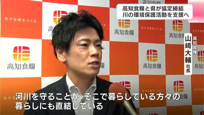 高知県内の食品卸会社と高知県が15年前から結んでいた川の環境を守る活動を支援する協定が更新され、県庁で協定の締結式が行われました。